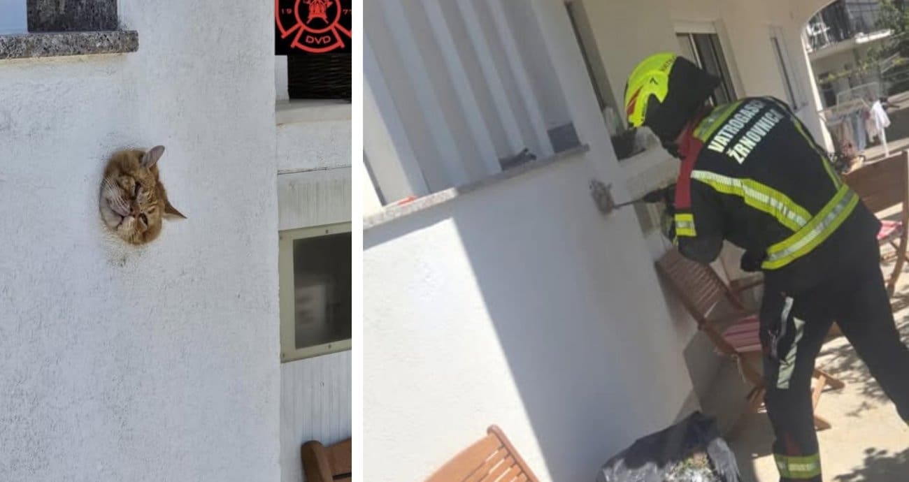 Naime, nesretna životinja zaglavila je glavu u otvoru u zidu, iz kojeg se nije mogla sama izvući. Iako su vatrogasci dosad sudjelovali u brojnim spašavanjima životinja, ističu kako sličnu situaciju još nisu imali.