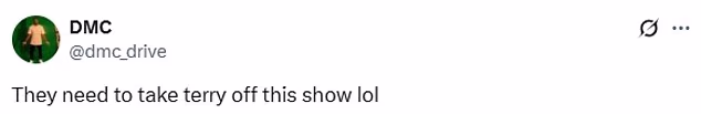 ‘Moraju ukloniti Terryja iz ovog showa lol’, napisao je drugi.
