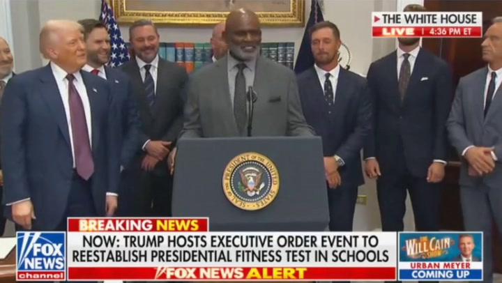 Taylor i ostali sportaši, uključujući Golfer Bryson DeChambeau i Kansas City Chiefs, Harrison Butler, pridružili su se Trumpu dok je potpisao izvršnu naredbu kako bi vratio predsjednički test fitnessa, niz fizičkih izazova za školarce u SAD -u koji je bio na mjestu već desetljećima, ali suspendiran prije 12 godina.