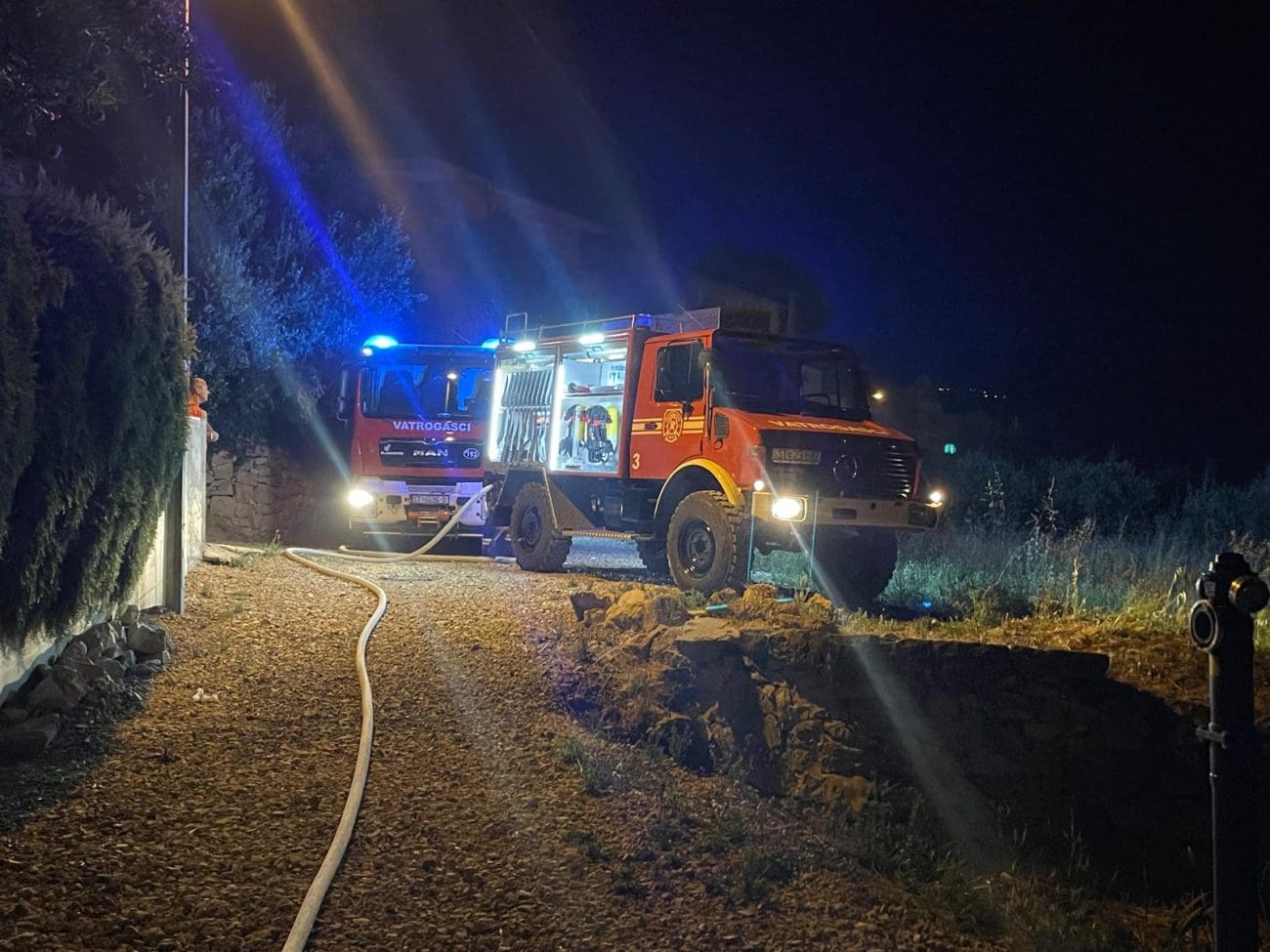 Vatrogasci Dobrovoljnog vatrogasnog društva Žrnovnica i Vranjic intervenirali su sinoć u 23:43, a požar je lokaliziran tek 40 minuta kasnije, u 00:20, dok je potpuno ugašen u 01:24 sati. Na terenu su bila tri vatrogasna vozila i ukupno devet vatrogasaca koji su, unatoč zahtjevnim uvjetima, spriječili širenje vatre prema okolnim objektima.