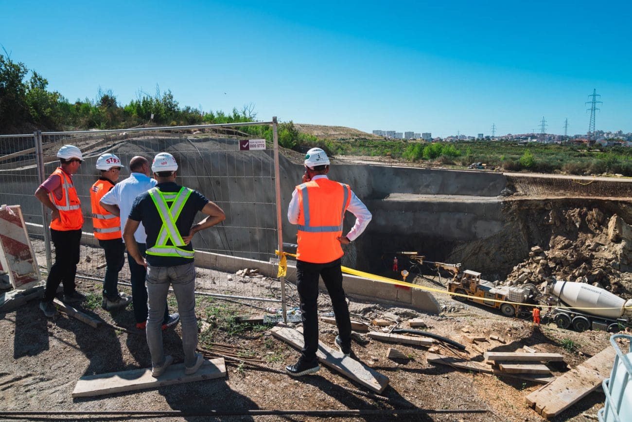 U međuvremenu smo stigli na istočni dio gradilišta, prema Stobreču. Tunel ima još niti stotinjak metara iskopa, a radovi su mjestimično u betonima, mjestimično još nije ni raskrčeno zelenilo. Vide se stupovi novog nadvožnjaka – postojeća trasa dakle ide prema TTTS-u, a nadvožnjak je ostavljen za budući novi izlaz iz grada.