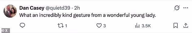 ‘Kakva nevjerojatno ljubazna gesta divne mlade dame’, napisao je jedan komentator.