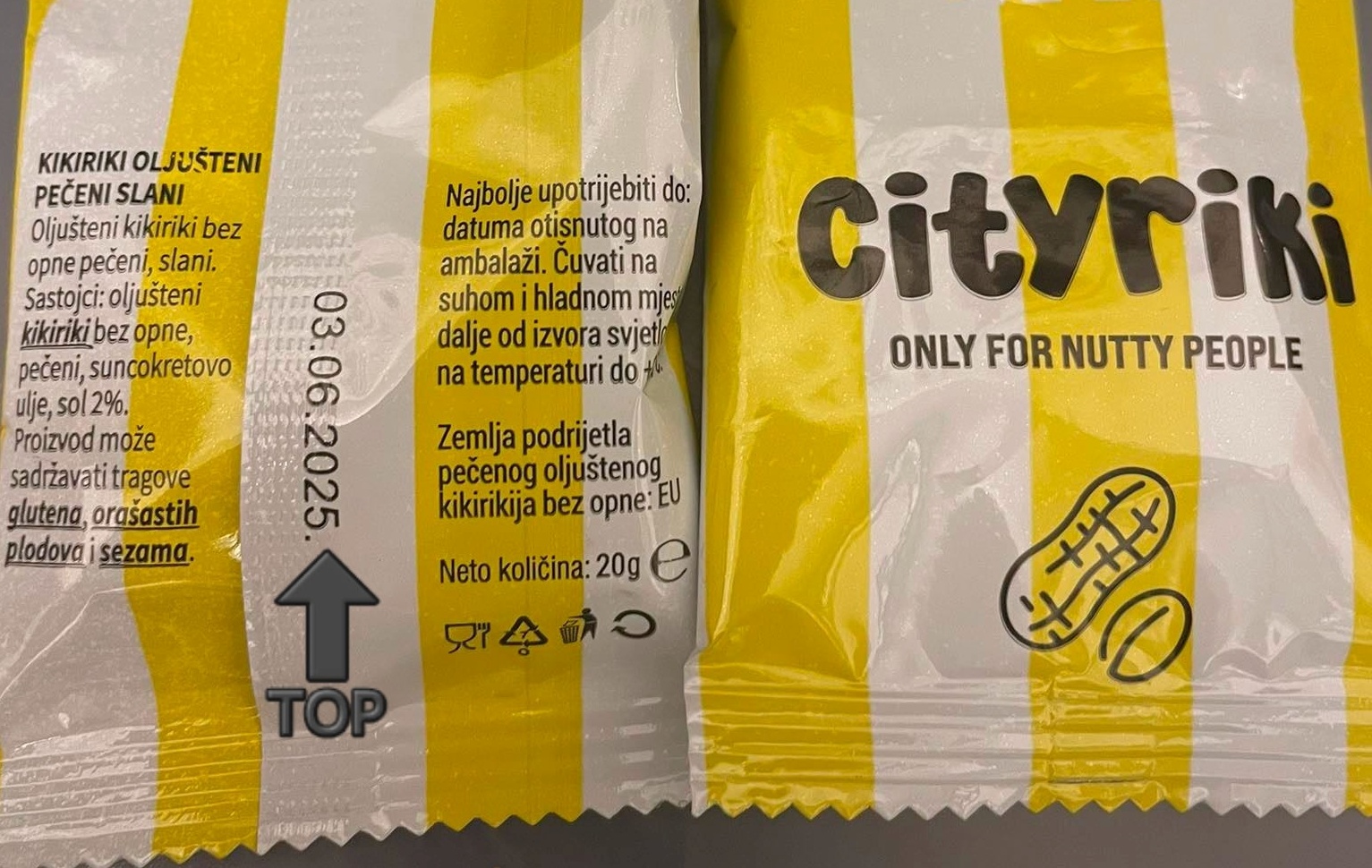 Ukoliko ipak ne osvojite neku veću nagradu, tada dobijete tzv. utješne nagrade – paketiće oljuštenog prženog slanog pečenog kikirikija bez opne Cityriki. I sve bi bilo u redu da tom kikirikiju rok trajanja nije prošao prije više od četiri (4) mjeseca“, piše halo inspektore uz priloženu fotografiju.
