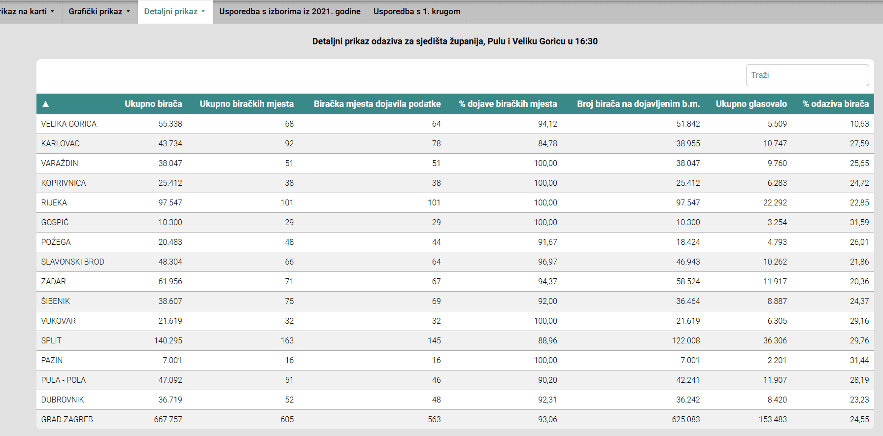 Na lokalnim izborima u Splitsko-dalmatinskoj županiji izlaznost do 16:30 sati u drugom krugu iznosi 23,54%. Za usporedbu, u prvom krugu u isto vrijeme izlaznost je bila 33,06%, a na prethodnim izborima 32,67%.