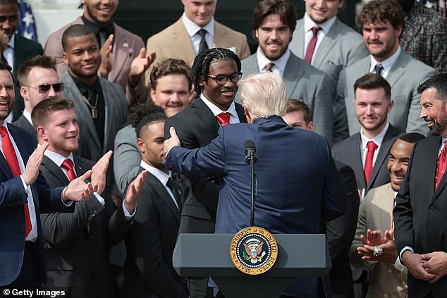 “Ne bih to trebao reći, ali trener (dan) je Jeremiji dao neke velike pohvale u zakulisju”, rekao je Trump gostima na Južnom travnjaku, gdje su državne prvake izbacili osoblje Bijele kuće.