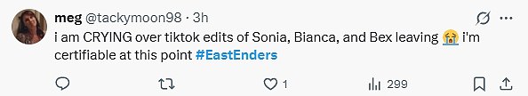‘Plačem zbog Tiktok -ovih izmjena Sonia, Bianca i Bex odlaska. U ovom sam trenutku certificiran. ‘