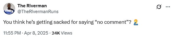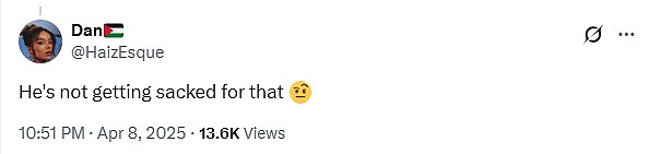 “Ne otpušta se zbog toga”, objavio je jedan navijač na X.