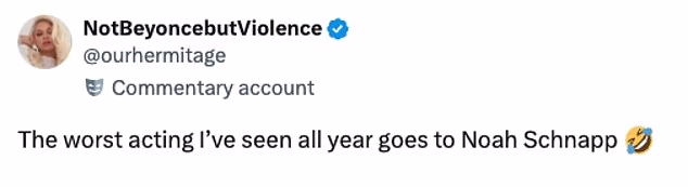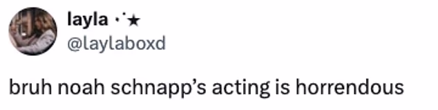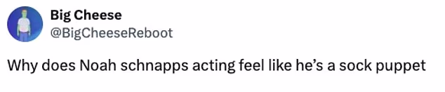 U X su se ljutili: ‘Zašto gluma Noaha Schnappa izgleda kao da je lutka u čarapama?’: ‘Najgora gluma koju sam vidio cijele godine ide Noahu Schnappu’: ‘Gluma Noaha Schanppa je užasna’