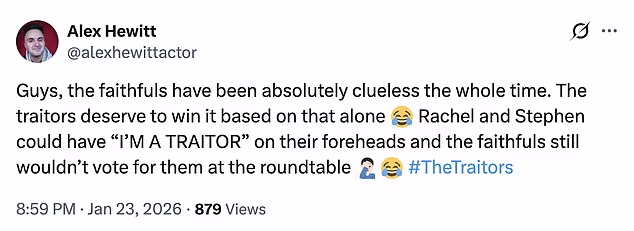 Gledatelji Traitorsa ostali su ljuti nakon što je Faithfuls propustio pogrešku Rachel Duffy tijekom napete posljednje epizode prije nego što su ona i Stephen proglašeni pobjednicima