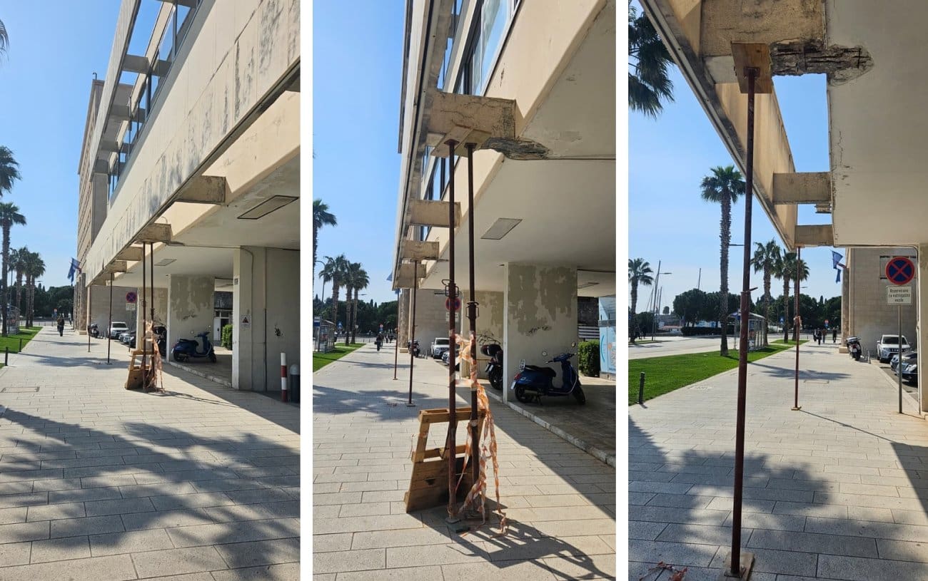 OPASNOST U CENTRU SPLITA Oštećeni dio zgrade ispred HZZO-a već mjesecima stoji poduprt: “Nekidan se bilo malo odronilo”