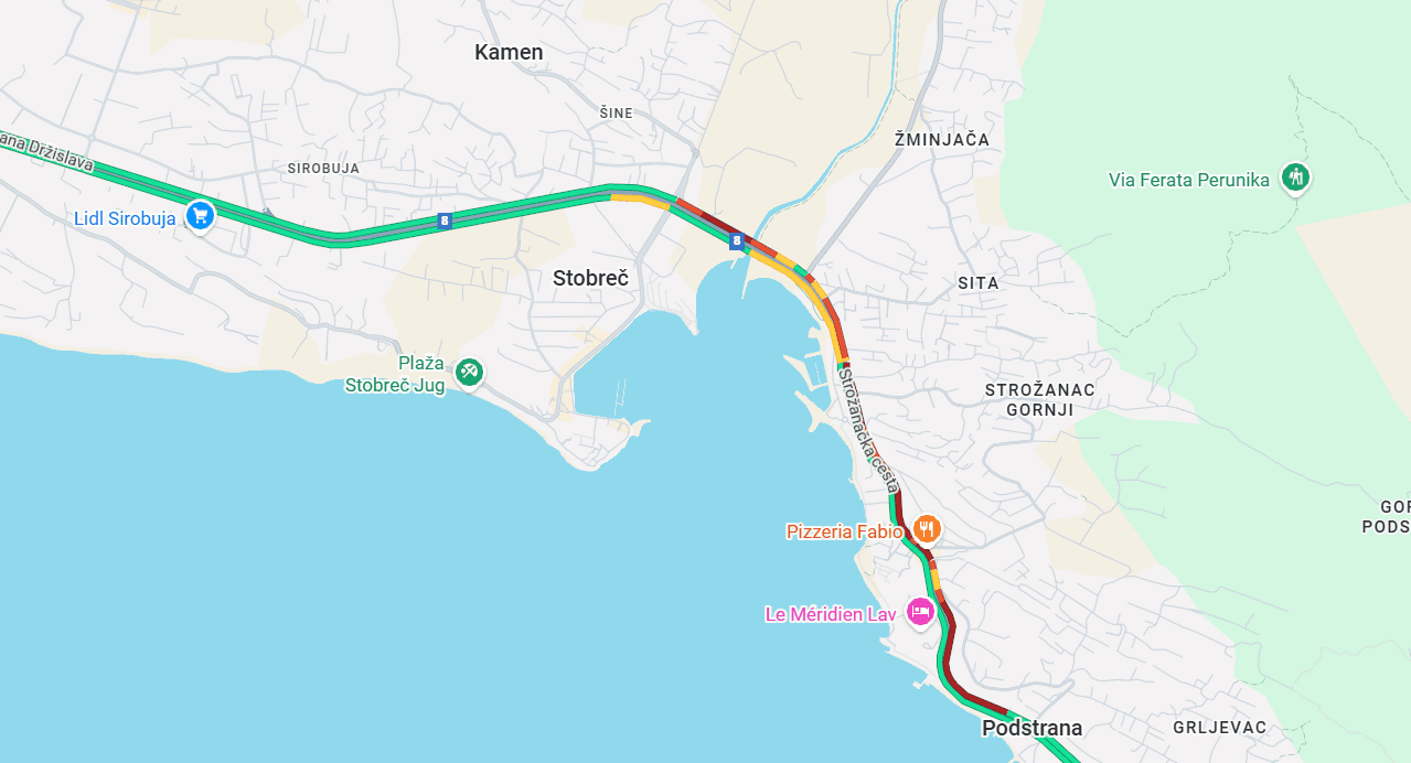 Google Traffic se dobro crveni, stoga ako krećete prema Splitu samo strpljivo!