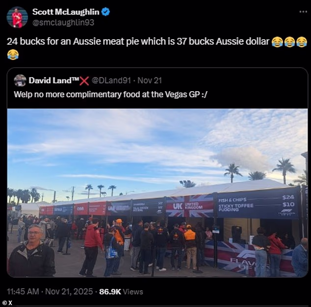 Australcima koji su putovali na Grand Prix u Las Vegasu kako bi vidjeli može li Oscar Piastri obnoviti svoje šanse za naslov svjetskog prvaka dobivaju nečuvenih 37 dolara za mesnu pitu.