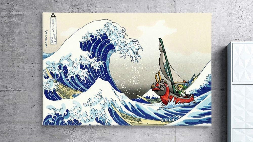 Ova legenda Zelda Canvas Wall Art savršen je poklon za bilo kojeg obožavatelja Zelda. Ponovno stvara bezvremenski veliki val Kanagawa od Katsushika Hokusai, ali uz zabavni vjetar Waker. To je ista točna umjetnost, ali sada Link i kralj crvenih lavova plove u prvom planu. To je blesavo, zabavno i sjajno izmirivanje poznate slike i jedna od najboljih Zelda igara svih vremena. Ako tražite sjajnu legendu o Zelda poklon za sebe ili Nintendo obožavatelja u vašem životu, to definitivno vrijedi razmotriti.