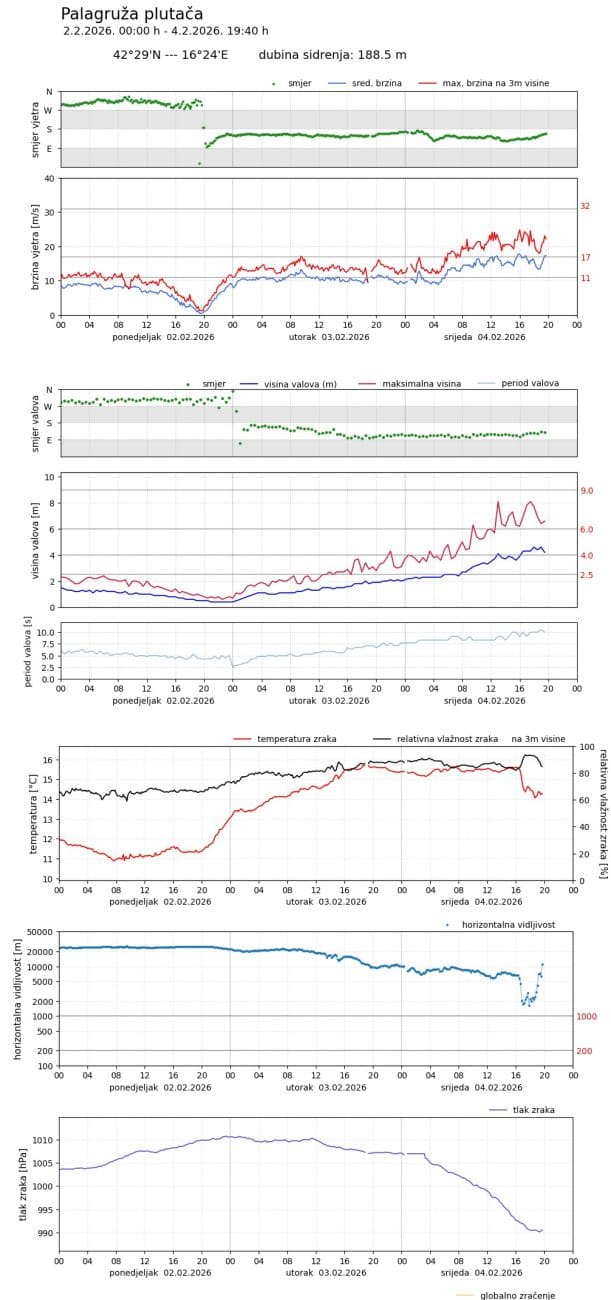 “Za nas ovo nije ništa ekstremno, navikli smo na ovakve uvjete. Zanimljivo, jače udare vjetra javlja naša postaja na svjetioniku u odnosu na vrijednosti koje daje sama plutača. Očekujemo lagano slabljenje vjetra od 20 sati”, kazao nam je legendarni svjetioničar.