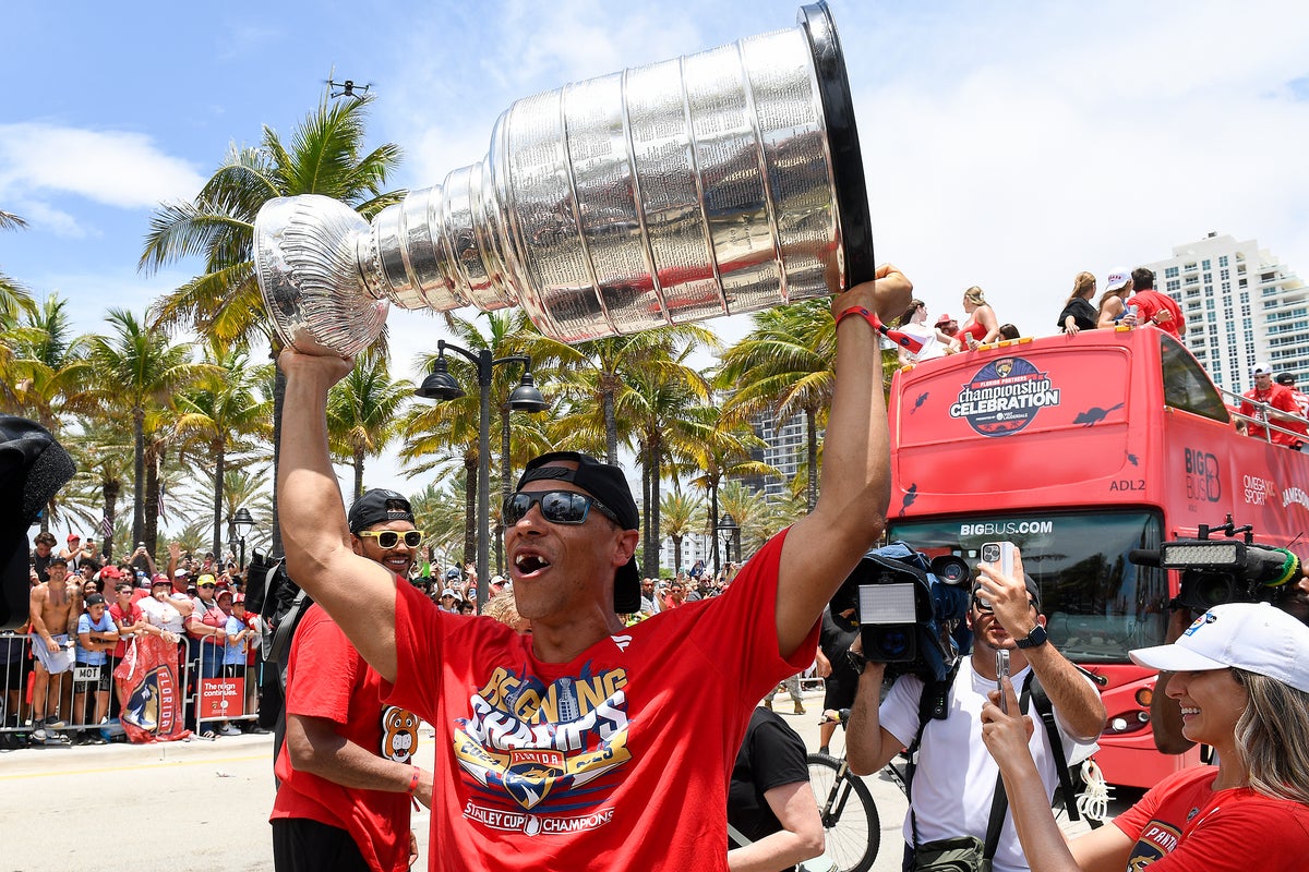 Pobjednici Stanley Cup-a za povratak imali su u nedjelju svoju povorku prvenstva i okupljali se na plaži Fort Lauderdale u nedjelju, istoj postavi kao i prošle godine-osim ovog puta, svijetlo sunce pozdravilo je prvake za razliku od pljuskova i munje prije godinu dana.
