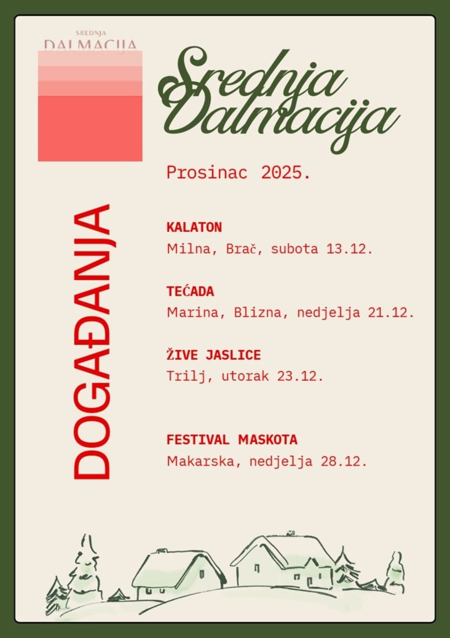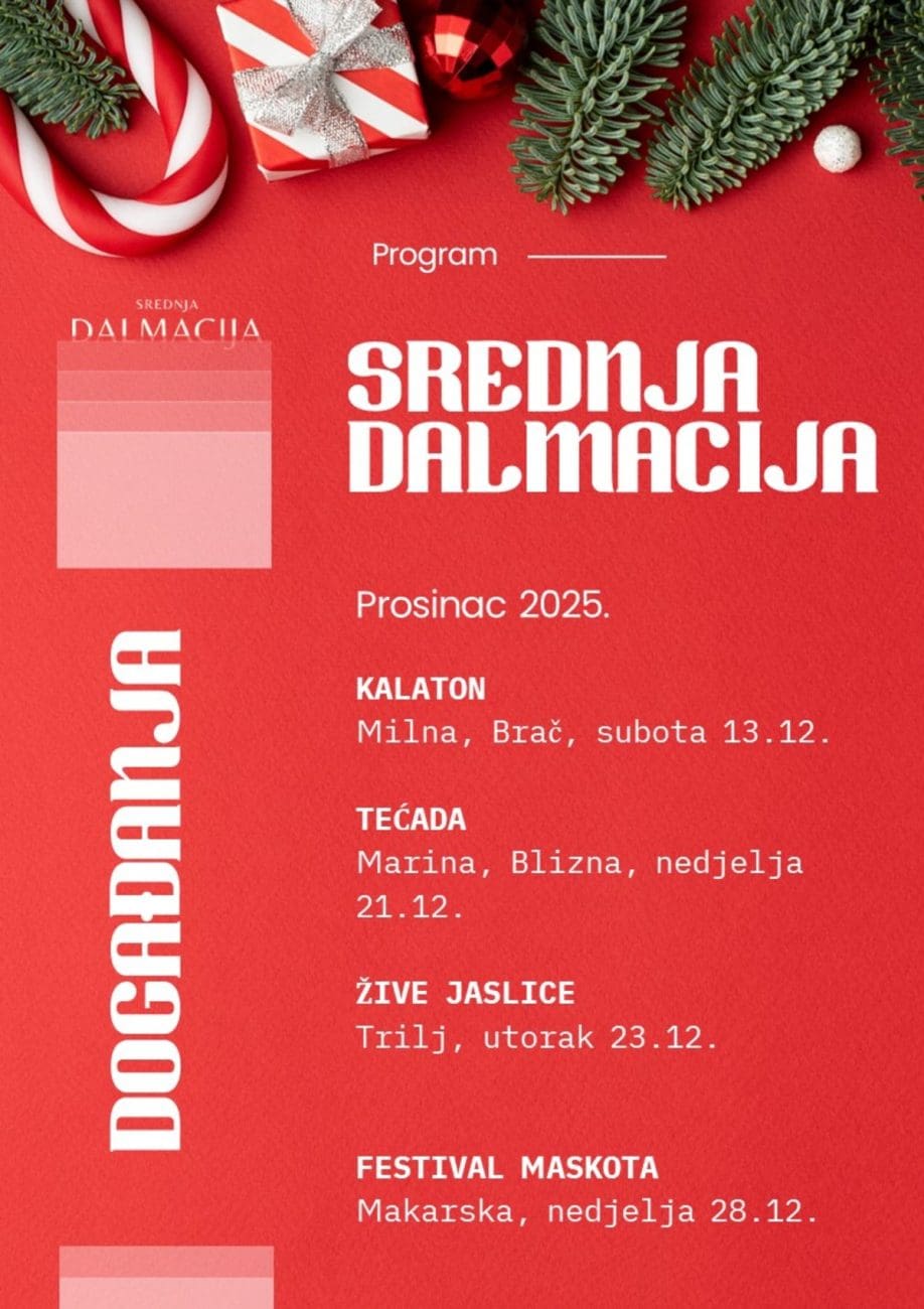 Turistička zajednica Splitsko – dalmatinske županije, u suradnji s lokalnim turističkim zajednicama, prikupila je popis aktualnih adventskih događanja koja se održavaju diljem županije. Cjeloviti pregled moguće je pronaći na službenoj web stranici Turističke zajednice, www.dalmatia.hr, u novoj rubrici Događanja koja se ažurira svaki mjesec i omogućuje jednostavno praćenje svih događanja.