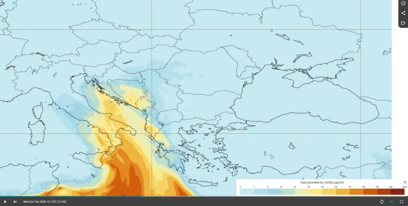 Prema prognostičkim modelima, prisutnost pustinjskog pijeska u atmosferi zadržat će se i tijekom srijede i četvrtka, uz nastavak nestabilnog vremena i povremenu kišu.