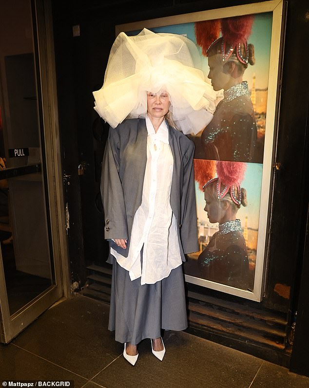 Pamela Anderson okreće glave u dramatičnom šeširu od tila dok pohađa posljednju show djevojku Q&A u Londonu