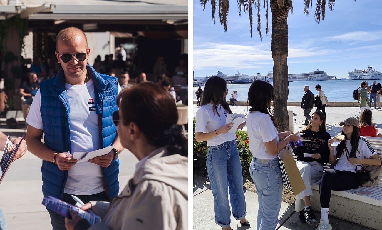 Ovog vikenda, volonteri udruge “Naš posao, naša budućnost” proveli su anketu među Splićanima o temi sve većeg prisustva strane radne snage, stranih tvrtki i agregatora na hrvatskom tržištu. Akcija je provedena na nekoliko gradskih lokacija, a vremenski uvjeti i raspoloženje prolaznika omogućili su da se prikupi znatan broj odgovora.