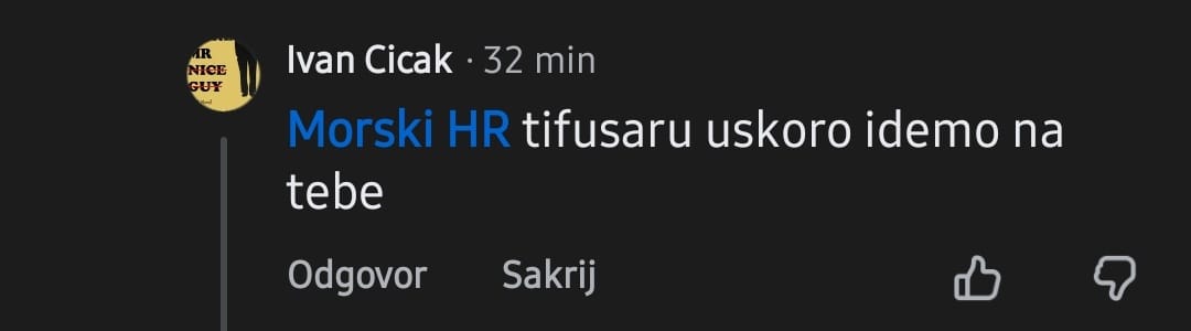 „Morski HR Ti i takvi kao ti ste potomci tifusara, doći će te svi na red, samo polako bez žurbe. Mislis ako se kriješ iza stranice da te ne možemo pronaći? Živi bili pa vidjeli.“