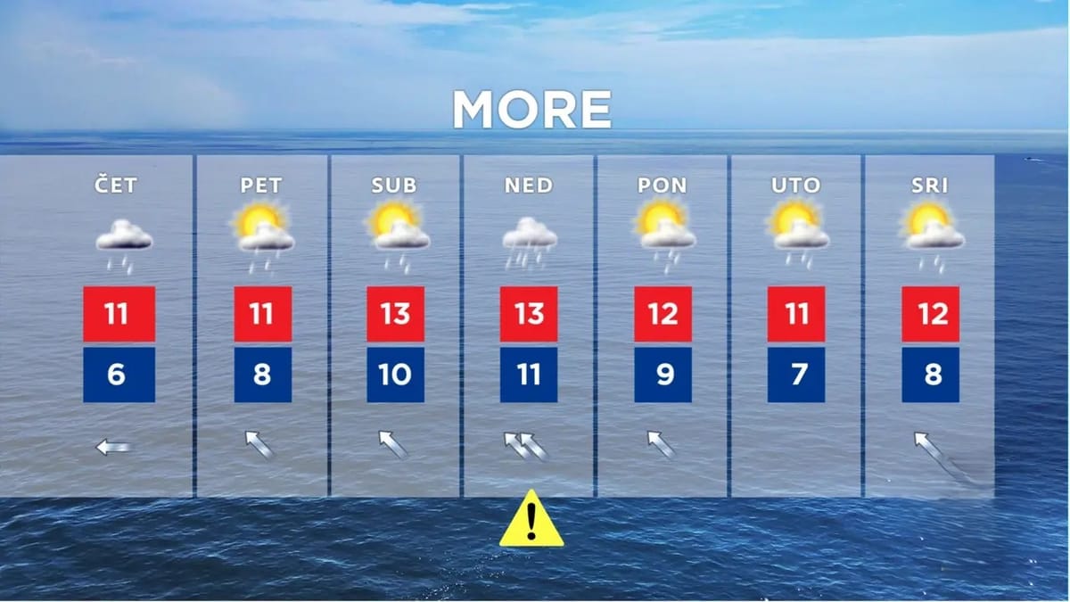 Južnije toplije, danju uglavnom od 10 do 13 °C, te izostanak noćnih i jutarnjih “minusa” čak i u Zagori jer će prevladavati umjereno jugo. No, na otvorenome će gdjekad zapuhati i lebić – jugozapadnjak, a uz obalu bura i levant – istočnjak. Pritom će biti promjenjivo oblačno uz sunčana razdoblja te povremenu kišu, uglavnom na otocima i grmljavinu, prognozira Zoran Vakula za HRT.