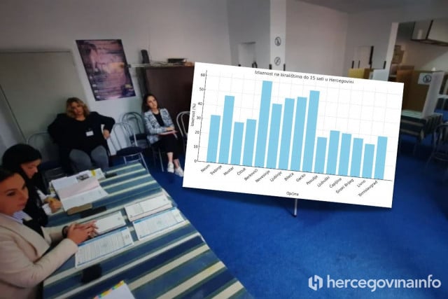 Današnji izbori u Hercegovini pokazali su značajne razlike u izlaznosti birača u različitim dijelovima regije do 15 sati. U istočnim dijelovima, poput Berkovica, Gacka i Bileće, izlaznost je izrazito visoka, dok je u zapadnim općinama izlaznost nešto niža.
