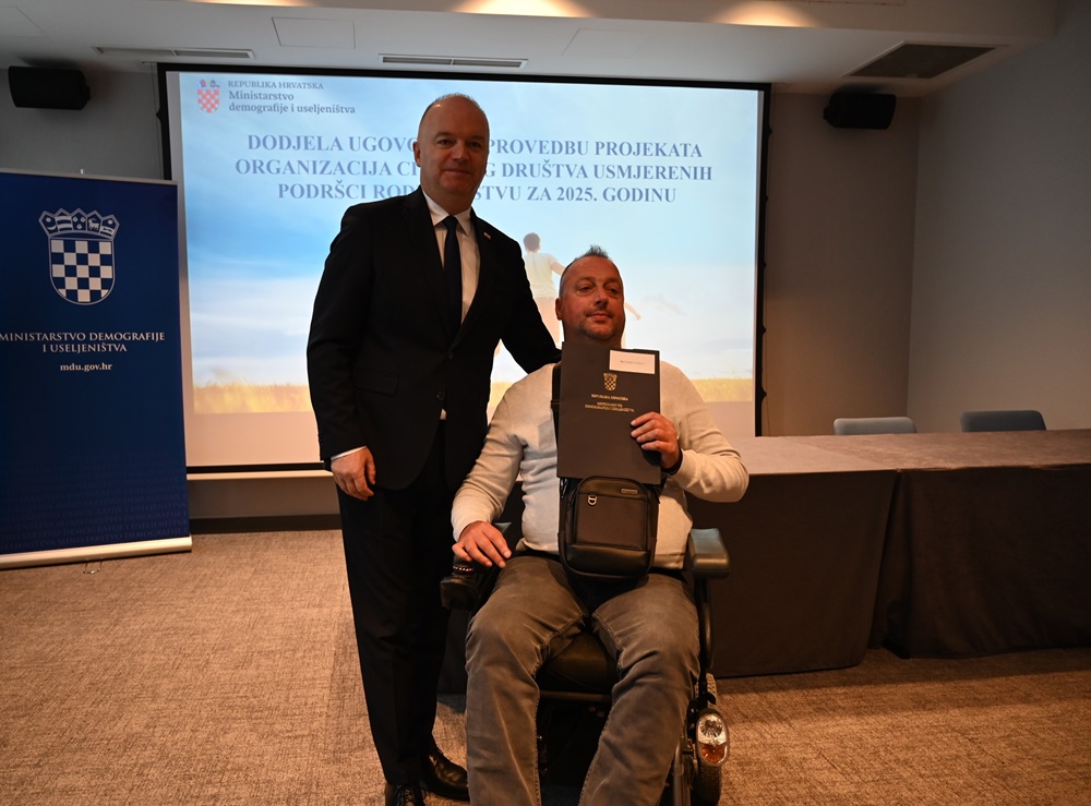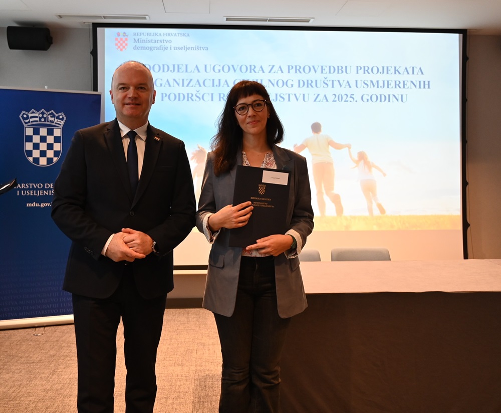 Ugovori u okviru poziva ‘Projekti organizacija civilnog društva usmjerenih podršci roditeljstvu u 2025. godini’ svečano su dodijeljeni u ponedjeljak.