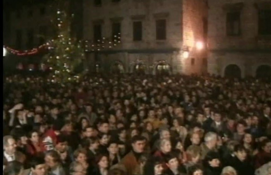 Voditelji programa i tehničari bili su ispod Sponze, u zavjetrini, radi kiše. ‘Kad su Linđovci i Gradska glazba otpjevali kolendu, a Stradun je već tada bio puno, to je bilo nešto svečano, fantastično. Toliko je bila dobra atmosfera da su ljudi kad je počela kiša, umjesto da se razbježe doma, otvorili ombrele i nastavili još više plesati,’ prisjeća se Prišlić.