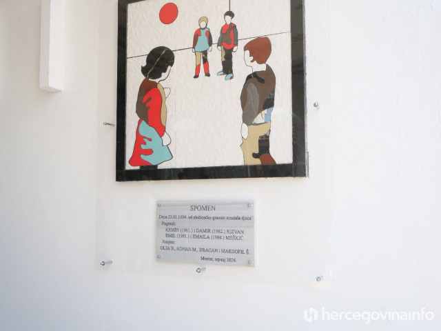 Spomen-obilježje za djecu koja su poginula od eksplozije granate u središtu Mostara 23. siječnja 1994. godine – Armina (1981.) i Damira (1982.) Rizvana, Emila (1981.) i Emailu (1984.) Meškić, otvoreno je u četvrtak u prolazu ispred zgrade Mostarke. Tog dana ranjeni su Olja Bojanić, Adnan Mušić, Dragan i Marijofil Šarić.