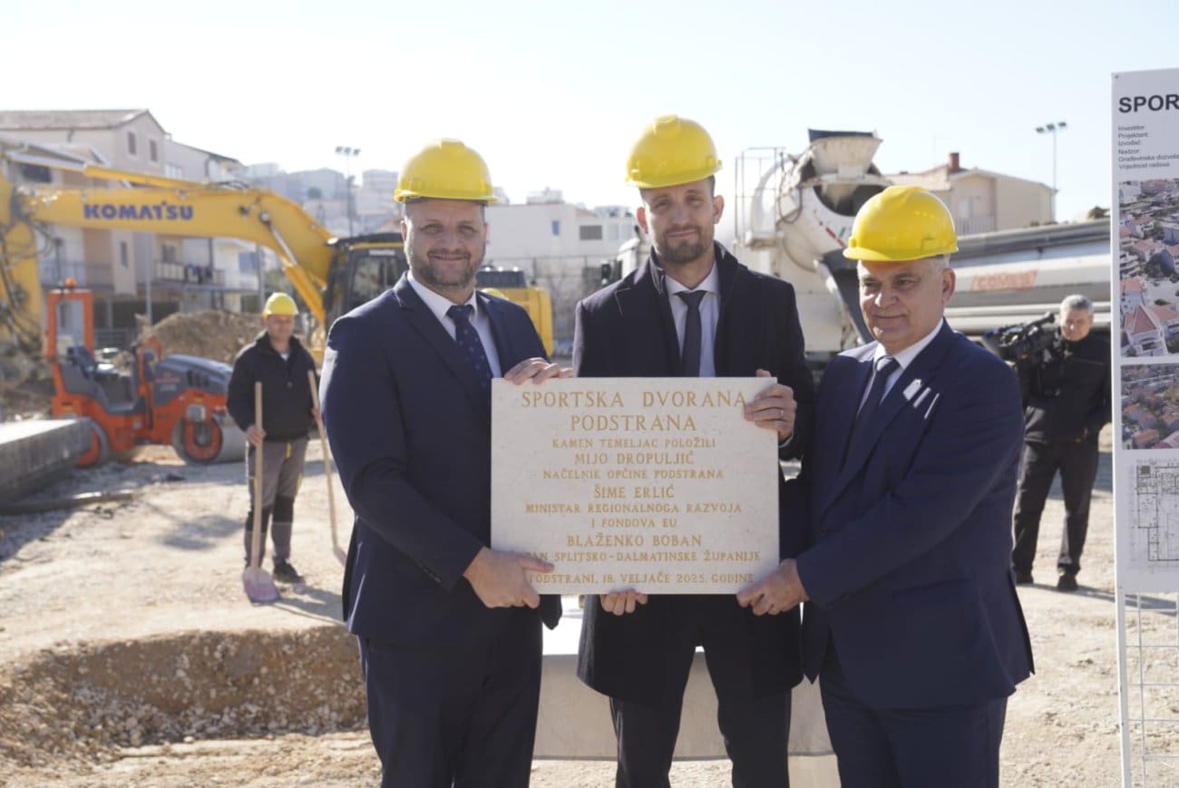 Na adresi Blato 1 u Podstrani danas je održana svečanost otvaranja radova i položen je kamen temeljac nove sportske dvorane.