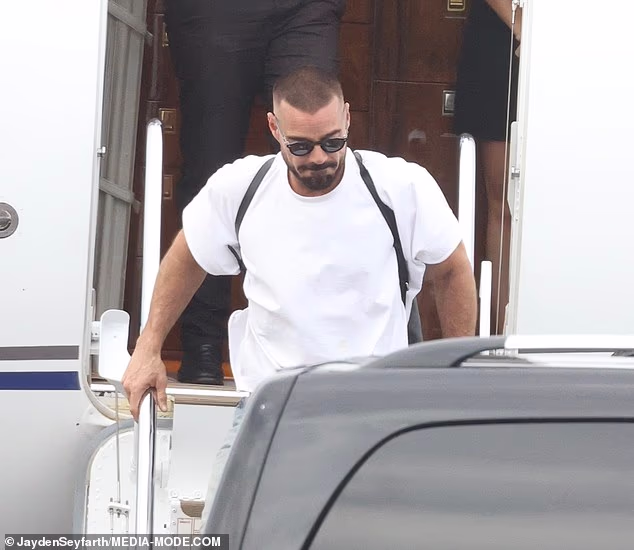 S dlakama na licu i tamnim sunčanim naočalama Ricky je izgledao gotovo neprepoznatljivo dok je izlazio iz zrakoplova.