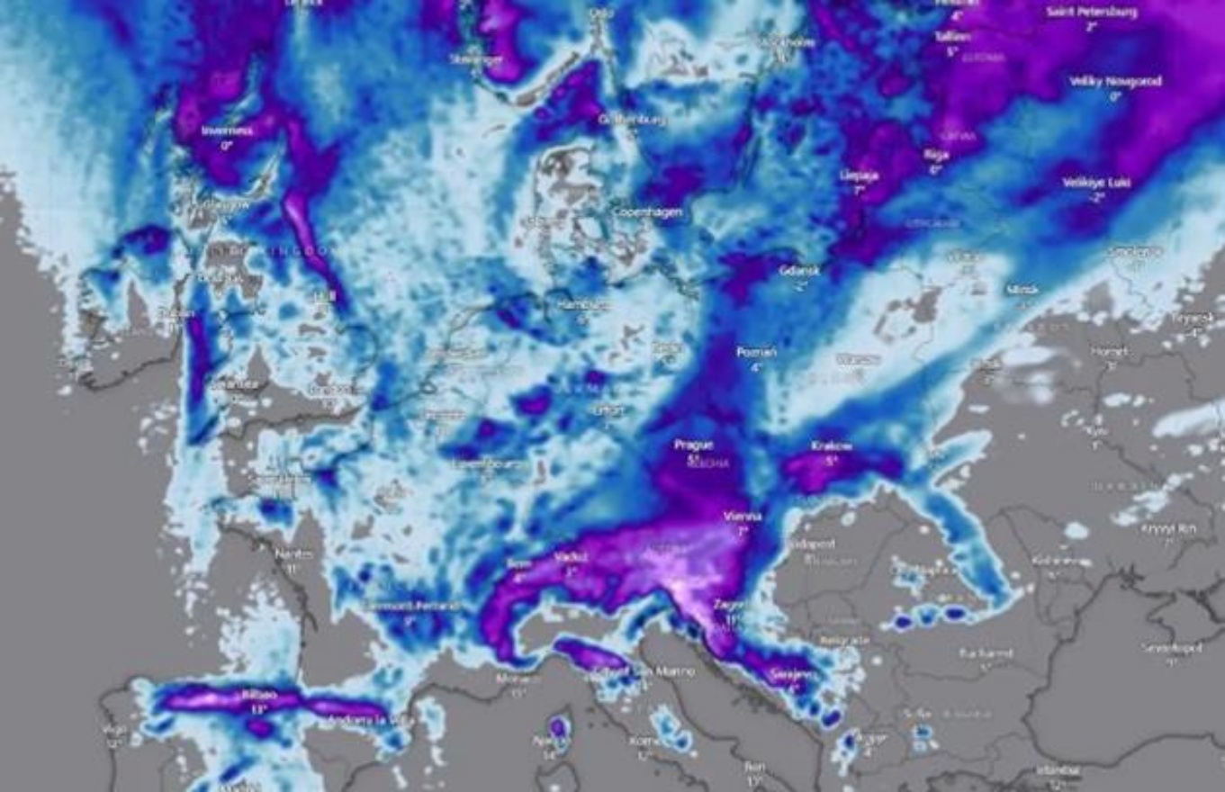 “Snažna blokirajuća anticiklona nad Atlantikom i Grenlandom otvara put ledenom arktičkom zraku koji će se sručiti prema jugu, donoseći značajno zahlađenje i prvi ovosezonski snijeg. Istovremeno, ovakav raspored sustava pokrenut će razdoblje vrlo kišovitog vremena za Mediteran, uz prijetnju obilnih oborina i poplava”, piše Severe Weather Europe.