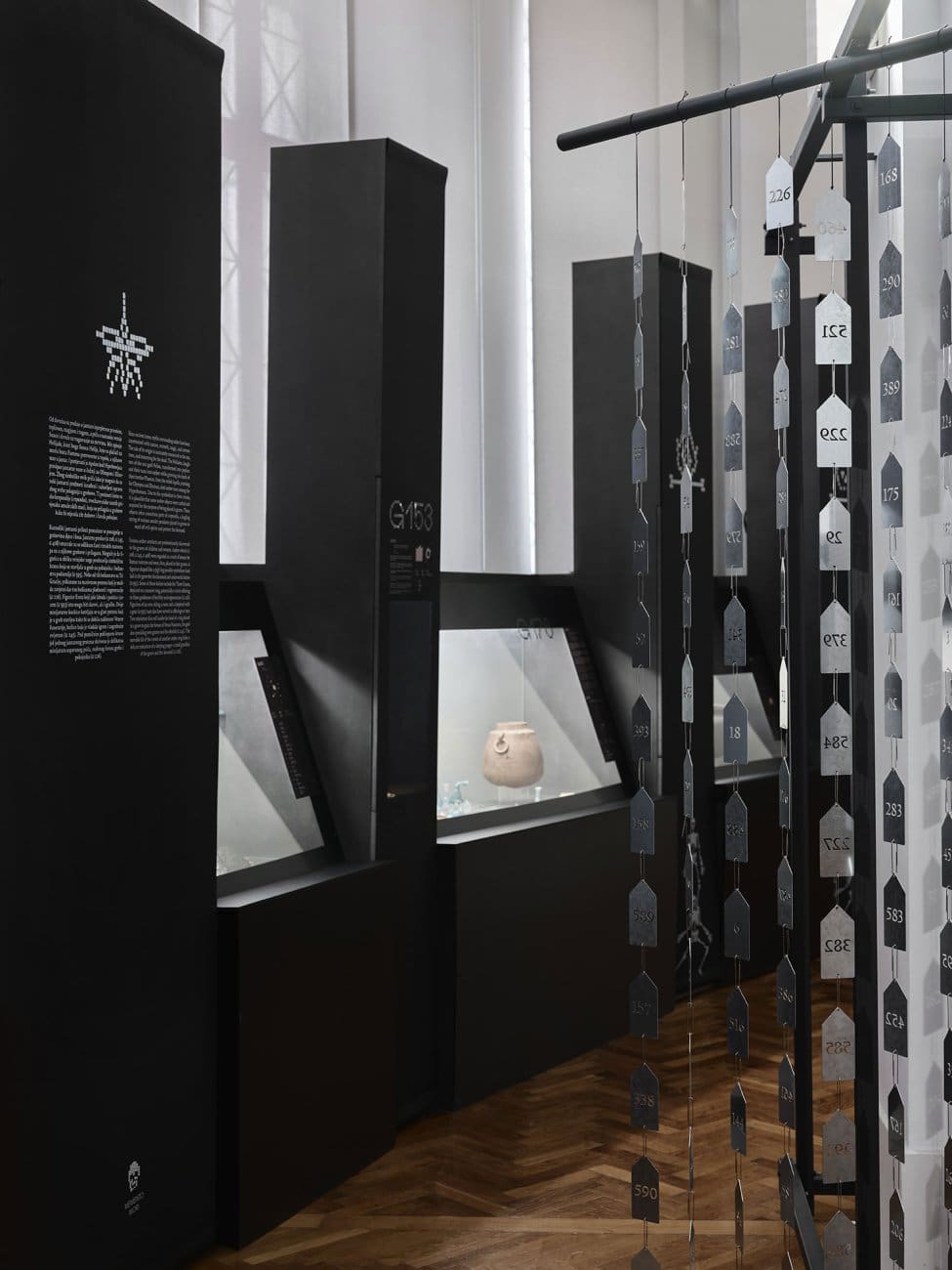Središnji dio izložbe čini impresivna dizajnerska instalacija koja odaje počast svim pokojnima sa Zapadne nekropole. Naime, tijekom istraživanja otkriveno je 615 grobova, a iako je prostor izložbe ograničen na predstavljanje šezdesetak njih, svi su simbolički prisutni – svaki grob obilježen je pločicom i brojem, osiguravajući da nitko ne ostane zaboravljen.