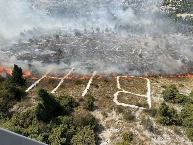 Profesionalna vatrogasna jedinica Mostar objavila je na službenoj stranici fotografije požara na području ispod zastave BiH. Vatra je buknula kod natpisa “BiH volimo te” koji je postavljen brdu Fortica.