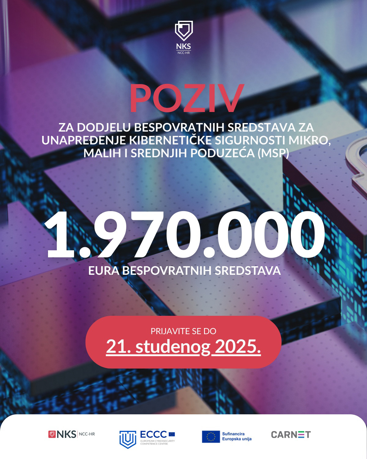 CARNET-ov NKS ovim pozivom otvara vrata da MSP-ovi taj iskorak naprave uz konkretnu financijsku podršku. Na potezu su sada sami poduzetnici – hoće li prepoznati priliku i osigurati otpornost svojih sustava ili će ostati u zoni rizika?