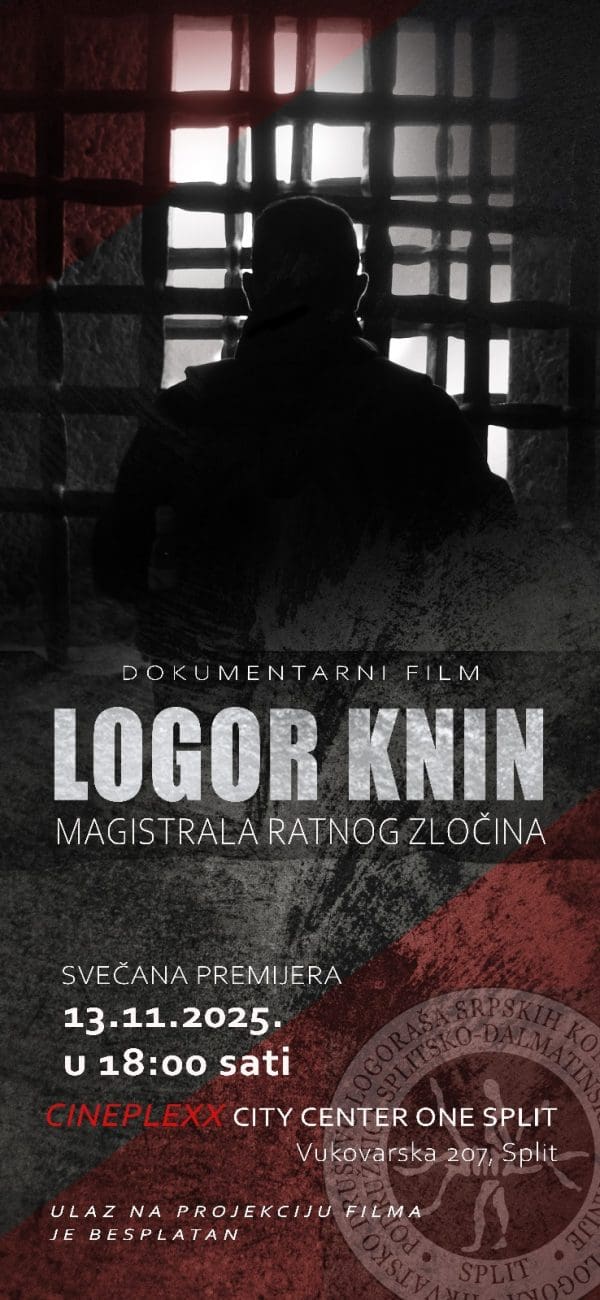 13.studenog 2025.godine s početkom u 18:00 sati, u Splitu na adresi Vukovarska 207- CINEPLEXX CITY CENTER ONE u suradnji s Muzejom Domovinskog rata u Splitu, a povodom obilježavanja „Tjedna sjećanja na žrtvu Vukovara i Škabrnje i Dana logoraša Splitsko-dalmatinske županije” održati će se svečana premijera dokumentarnog filma “MAGISTRALA RATNOG ZLOČINA- LOGOR KNIN”.
