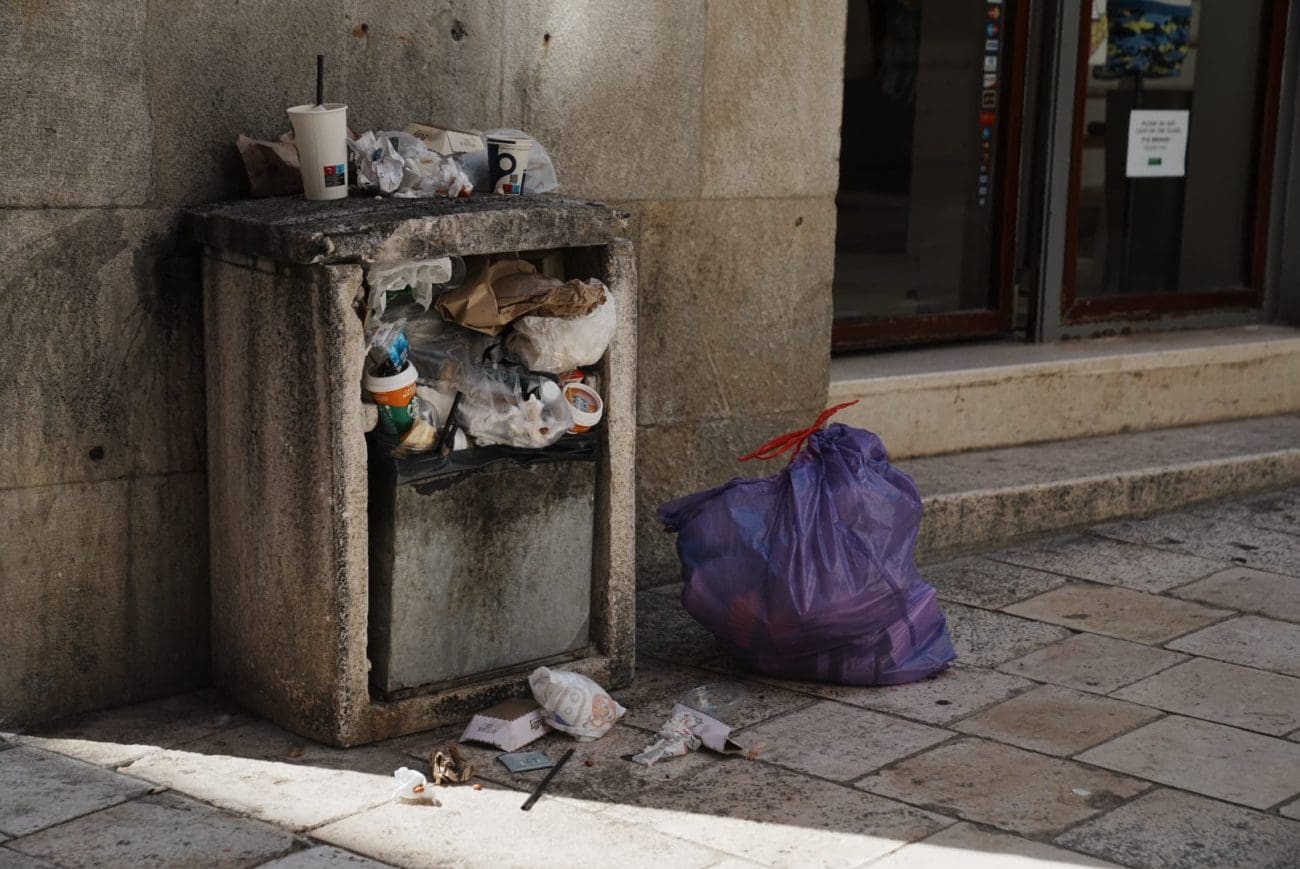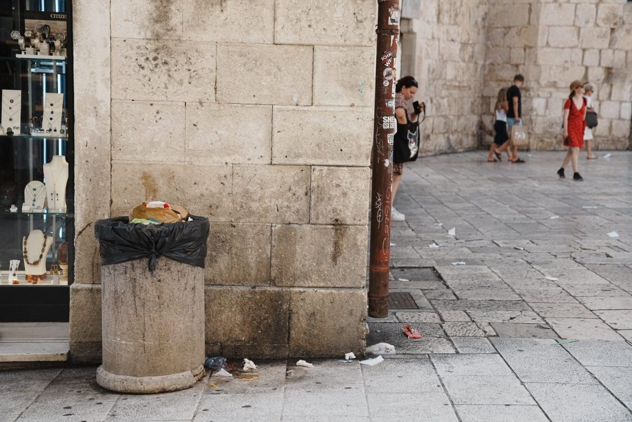 Turistička sezona u Splitu je u punom zamahu, a s njom nažalost i slike prepunih kanti za smeće i razbacanog otpada po ulicama.