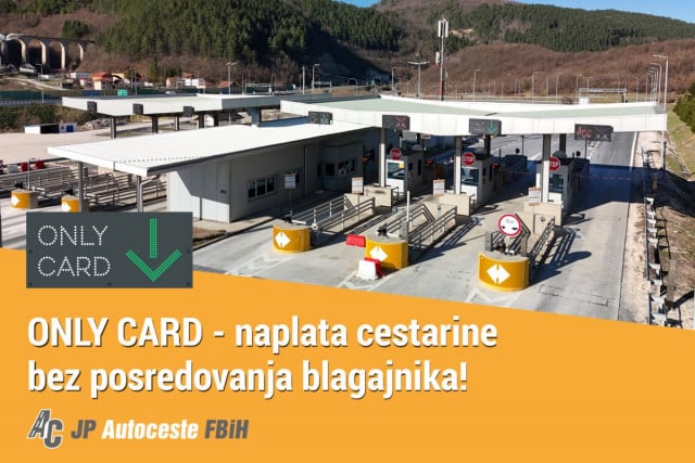 JP Autoceste FBiH d.o.o. Mostar su uvele dodatne mogućnosti plaćanja cestarine bankovnim karticama za korisnike manualne naplate cestarine kategorije K1 i K2, putem platomata na trakama koje će biti označene kao “ONLY CARD”.