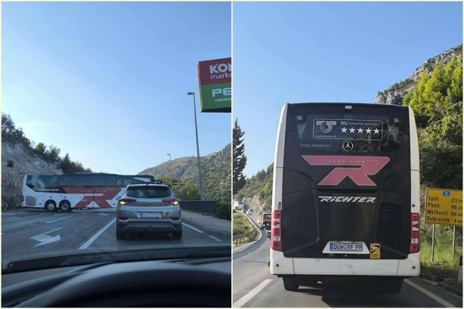 Neobičan prometni potez u Župi dubrovačkoj: Strani autobus se okrenuo na sred ceste (VIDEO)