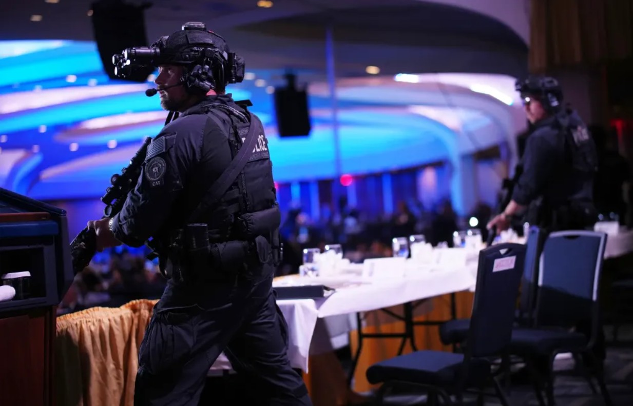 U subotu navečer na večeri dopisnika Bijele kuće u Washingtonu D.C. ispaljeni su pucnji. Osumnjičenik je uhićen. Pripadnih snaga sigurnosti je upucan iz neposredne blizine, ali ga je spasio pancirni prsluk. Pucnjava se dogodila u hodniku prije same velike dvorane.
