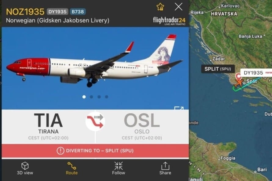 Avion koji je letio iz Tirane u Oslo danas je prisilno sletio u Split, doznaje Dalmacija Danas.