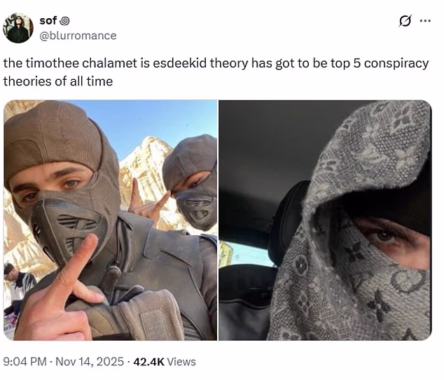Obožavatelji su pisali na X: ‘timothee chalamet je esdeekidska teorija mora biti 5 najboljih teorija zavjere svih vremena.’,