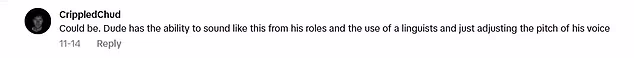 ‘Moglo bi biti. Čovjek ima sposobnost zvučati ovako zahvaljujući svojim ulogama i korištenju lingvista i samo prilagođavanju visine glasa.’,