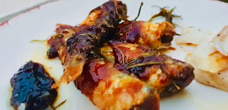 Posolite, začinite sa grančicama ruzmarina, nadodajte i nekoliko listića kadulje, pa pospite česnom narezanim na deblje listiće i sjeckanim petrusinom.