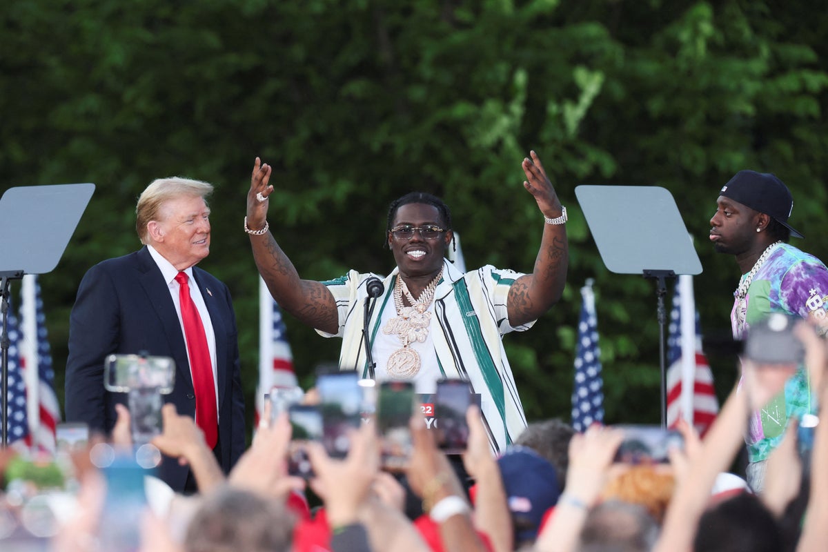 Trumpov zagrljaj repera s kaznenim dopisima smatra se strategijom u kojoj se naginje zabavljačima, a ne političkim vođama na sudskim crnim biračima. Čak je sugerirao da su vlastite optužnice i Mugshot pojačali njegovu žalbu bacajući ga kao kolegu cilja nepravednog sustava, taktiku opisanu kao “nevjerojatno rasističku”.