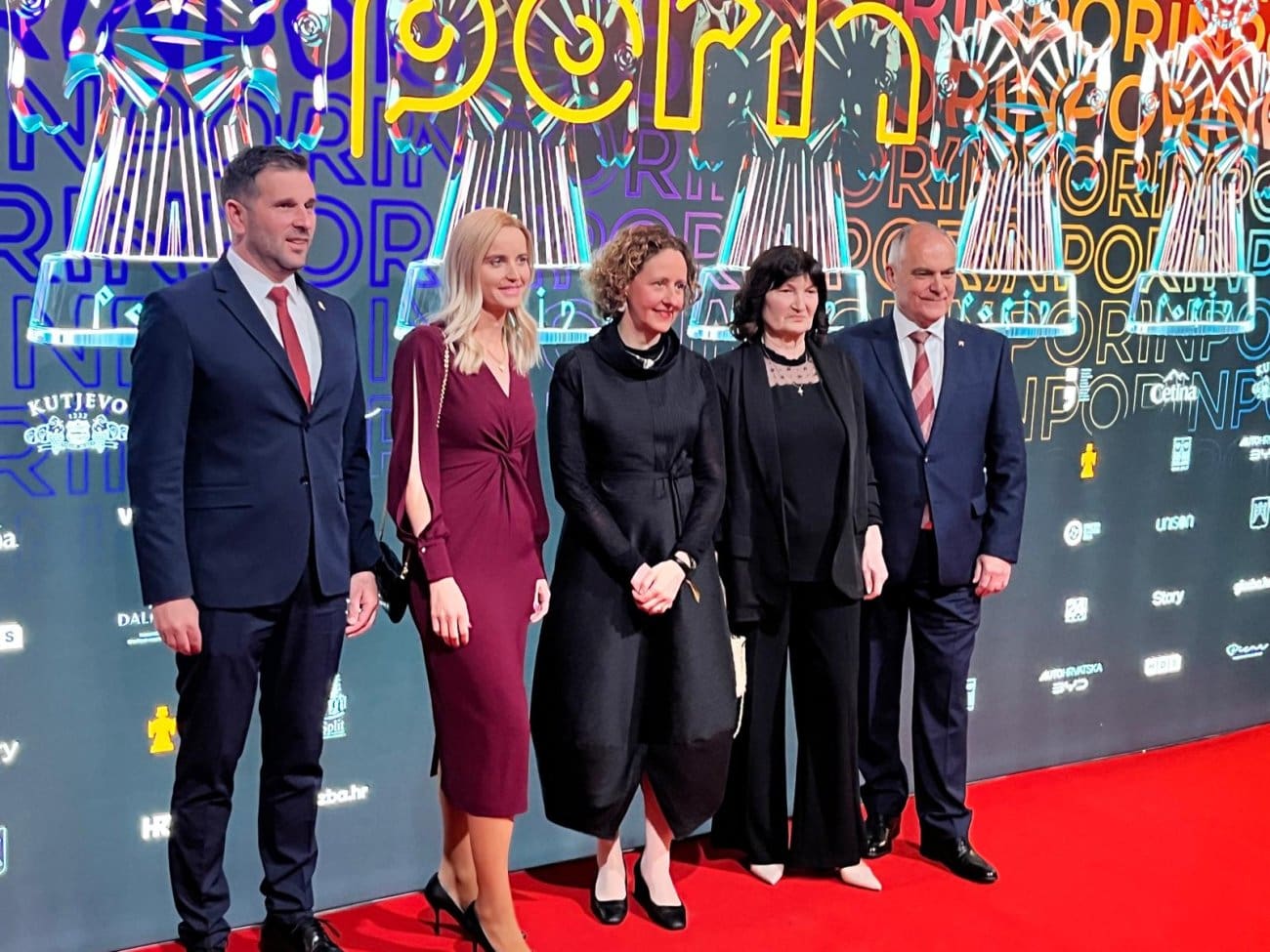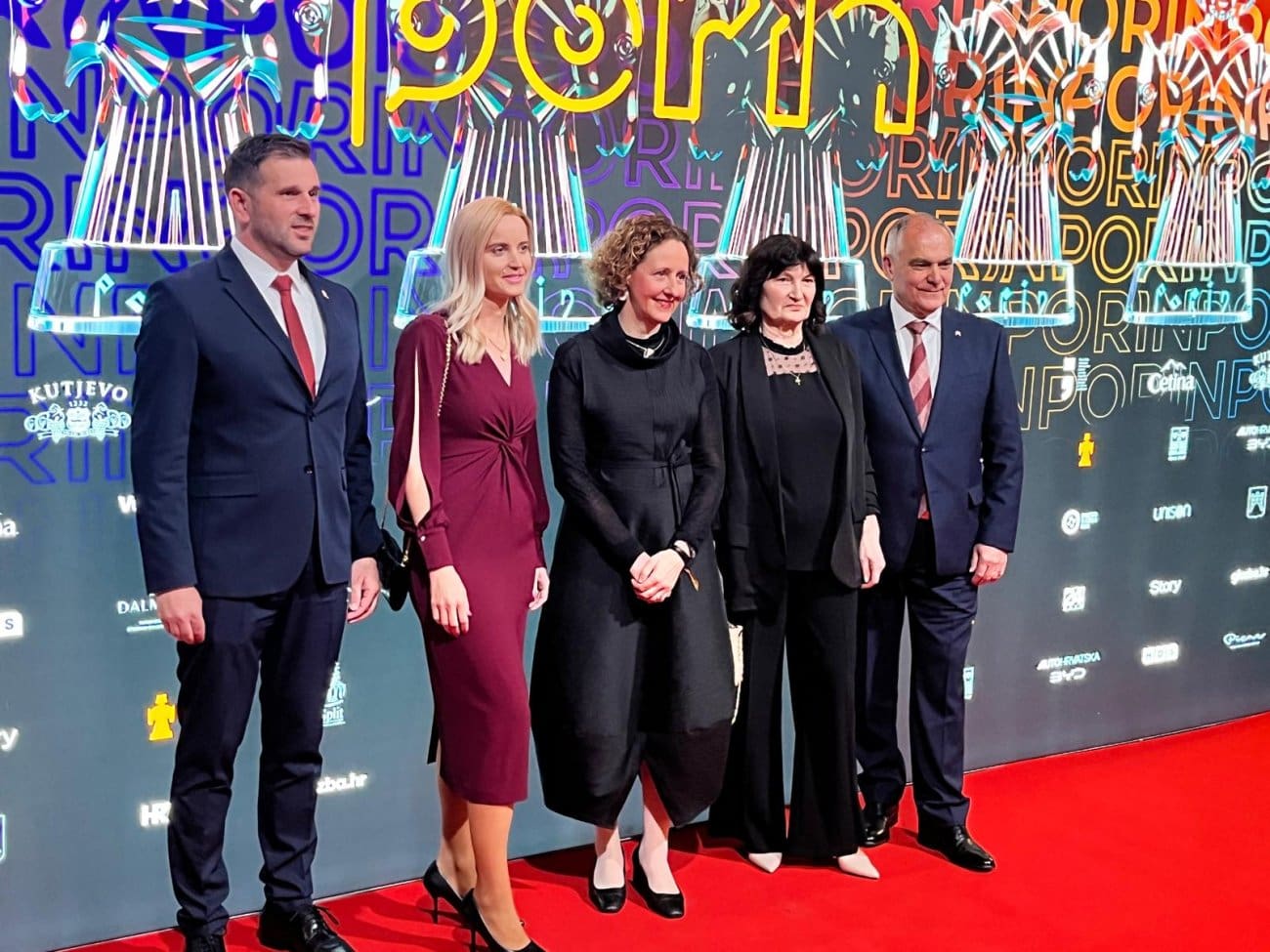 Župan Blaženko Boban bio je uz suprugu u svečanoj večernjoj odjevnoj kombinaciji, a par je zajednički pozirao fotografima, uz gradonačelnika Splita, Tomislava Šutu i njegovu suprugu Matildu.