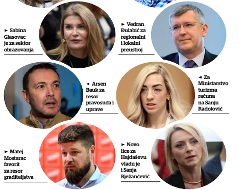 Izgleda da jedan profesor – bivši ministar iz Milanovićeva mandata, Branko Grčić nije zainteresiran za ponovni ulazak u vladu, nego bi radije ostao u Splitu gdje predaje na Ekonomiji, ali zato je među novim licima Matej Mostarac, sadašnji gradonačelnik Kastva, koji je velika uzdanica Hajdaša-Dončića jer je osmislio model priuštivog stanovanja koji je predstavio SDP i koji se razlikuje od onog HDZ-ova. Mostarac je mladi zastupnik, ali s već značajnim iskustvom te se spominje u kontekstu resora graditeljstva. Još jedno novo lice u Hajdaševim kombinacijama za vladu je i saborska zastupnica Sanja Bježančević, još ne zna za koji točno resor, ali na nju snažno računa.