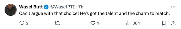 ‘Ne mogu se raspravljati s tim izborom! Ima talenta i šarma za to’, napisao je drugi obožavatelj.