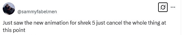 “Upravo sam vidio novu animaciju za Shrek 5, samo u ovom trenutku otkažite cijelu stvar.”