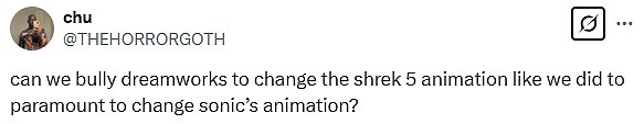 “Možemo li maltretirati Dreamworks da promijenimo animaciju Shrek 5 kao što smo to učinili u Paramount da promijenimo Sonic -ovu animaciju?”